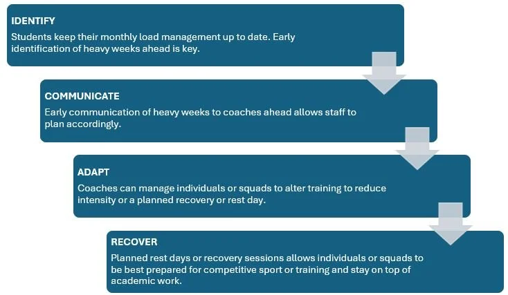 Our ultimate goal is empowering students to recognise and manage their schedules independently. By regularly engaging them in discussions about their weekly plans and recovery needs, we are fostering self-awareness and encouraging lifelong skills in load management. Already, we are seeing progress, with students taking proactive steps to balance their commitments.